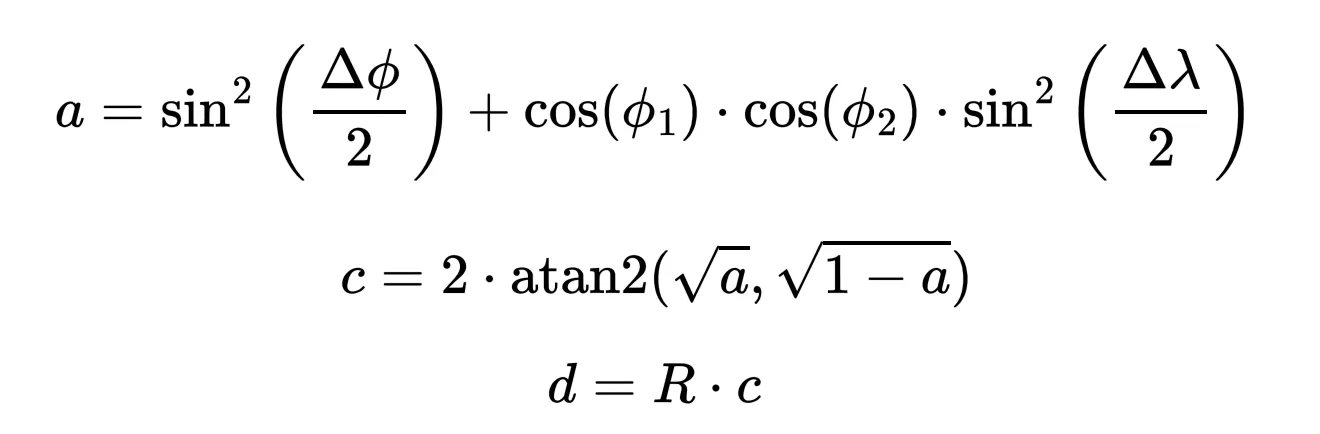 Ingressは、より精密なWGS-84楕円体モデルではなく、球面地球モデルを用いて距離計算を行っています。具体的には、球面の大円距離(Great-circle distance)を基にHaversine公式を用いて距離を計算します。公式は以下の通りです: