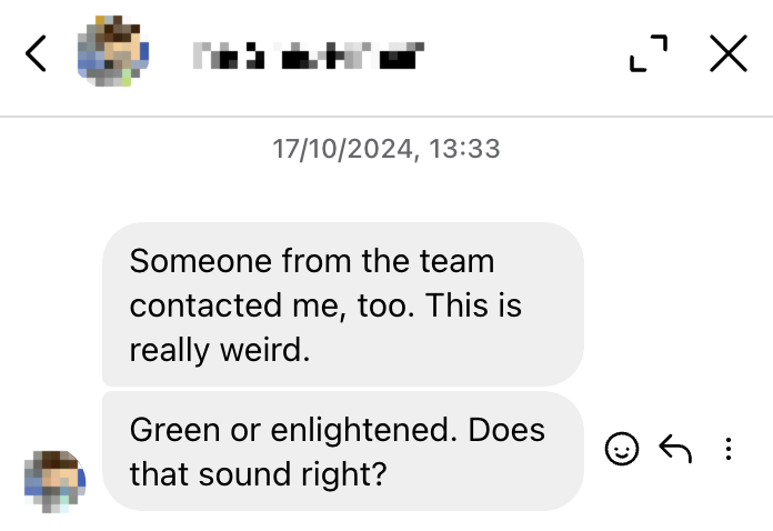 还有一个是气象局的工程师。这俩人都没把@Xyinkl当网络诈骗犯,也似乎有兴趣。但是最后都不了了之。