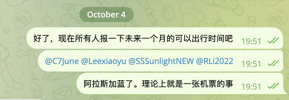 拉了个群,把会在这艘游轮上的小姐姐@Daisy2025拉了进来。