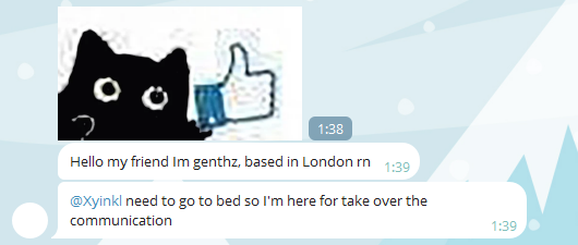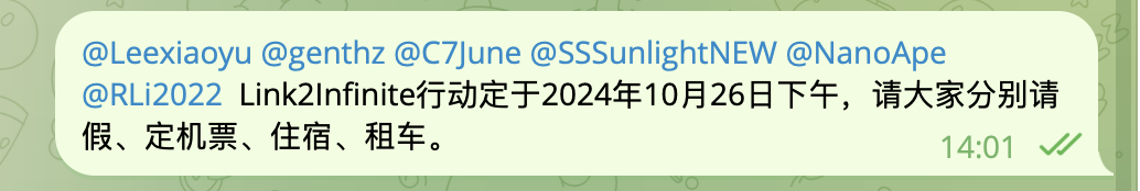 在@genthz (GMT+1)和@Xyinkl (GMT+8)两班倒的轮流沟通下,终于和加拿大蓝军@Ba1r0g(GMT-4)取得了联系,可以在2024年5月的芝加哥XMA交换Key。