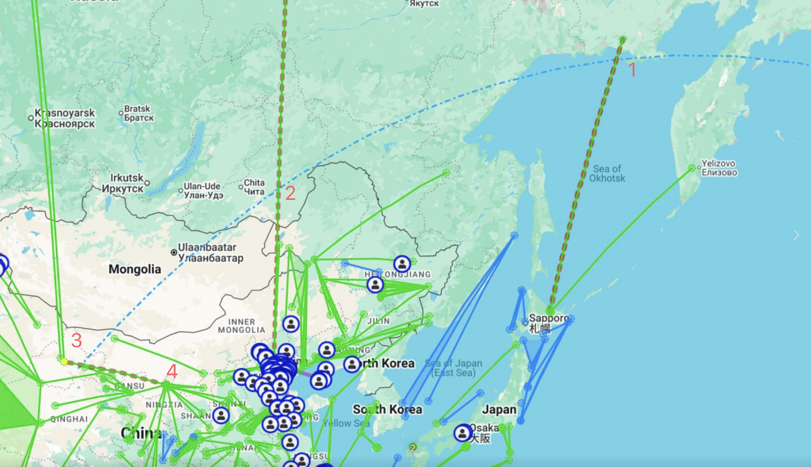 2024年4月13日,中国绿军实施了Op-Hello Arctic,从中国敦煌和北京两地,向格陵兰岛射出多条Link,最长游戏内距离为6881.2779km,距离极值2.1m。