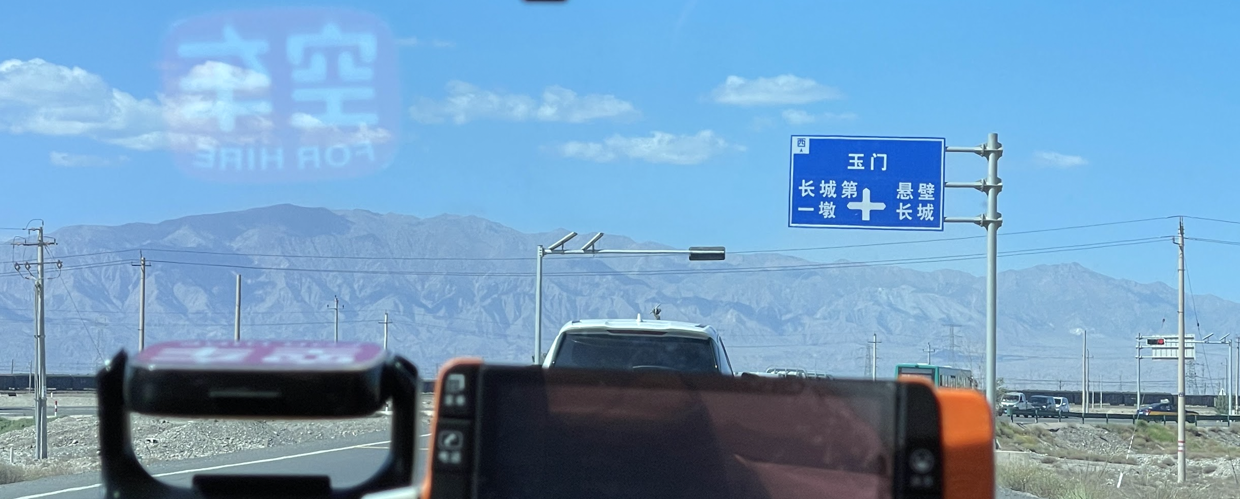 三人吃完饭,开了一个小时,在7点多太阳刚落下去的时候就到了玉门。
